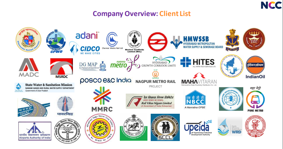 NCC operates pan India with offices in 13 cities across key states such as Maharashtra, Andhra Pradesh, Telangana, Karnataka, Gujarat, Uttar Pradesh, West Bengal, and Tamil Nadu.